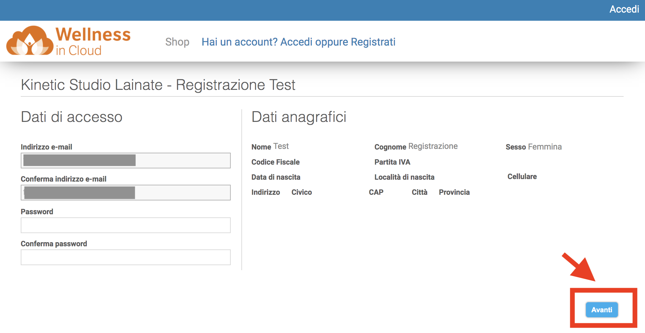 1. Al momento dell’iscrizione riceverai un link per l’attivazione del tuo profilo web. Clicca sul link di registrazione per procedere o copialo e incollalo nel tuo browser.